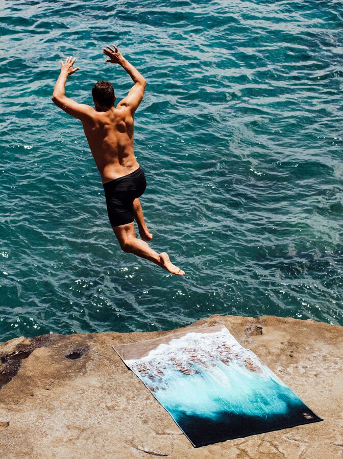 This season we are proud to announce our second collaboration with award-winning photographer, Clark Little. Painted Sand is an “aerial photograph of a shorebreak wave racing up the beach after it breaks. The sand and foam are mixed in with the darker water to form an abstract design.”