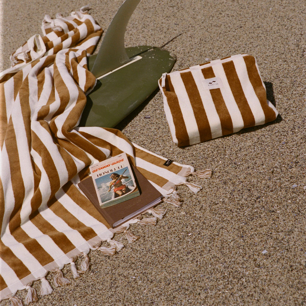 Absorbent & Functional - This ultra-plush towel is thicker than a traditional beach towel: it’s 500 GSM. Featuring a drawcord loop for quick drying and a reactive dye print that prevents fading, it's as practical as it is stylish.